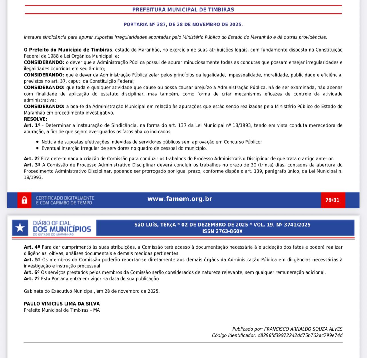 No dia 28 de novembro, a prefeitura de Timbiras publicou uma portaria tentando fingir transparência, mas isso é apenas uma reação desesperada dos escândalos que já estourou no mundo todo, o maior escândalo de corrupção administrativa da história do município, e com provas documentais.