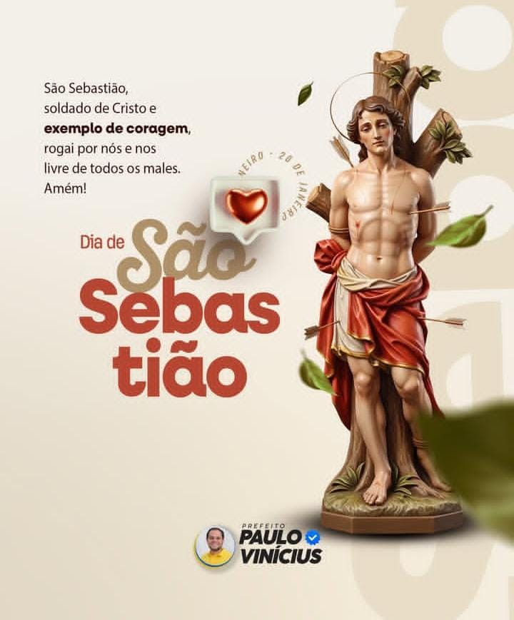 O prefeito Paulo Vinícius divulgou nesta terça-feira uma mensagem especial em homenagem ao Dia do padroeiro São Sebastião.