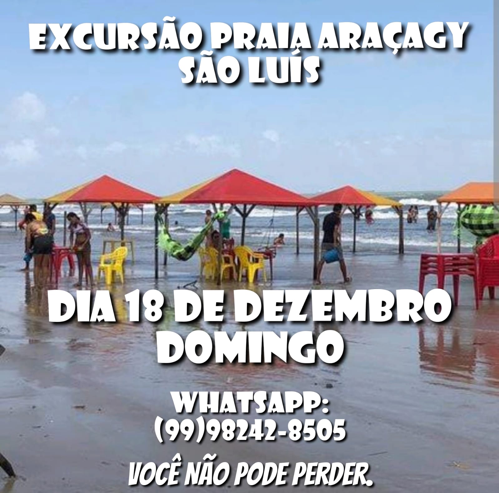 Está chegando o grande dia!. Será dia 18 de Dezembro, faça sua reserva, garanta já sua vaga pra nossa viagem para a PRAIA ARAÇAGY – São Luís-MA. Locais de saídas: parque Ambiental (Codó) e posto pré-sal 1 (Timbiras).