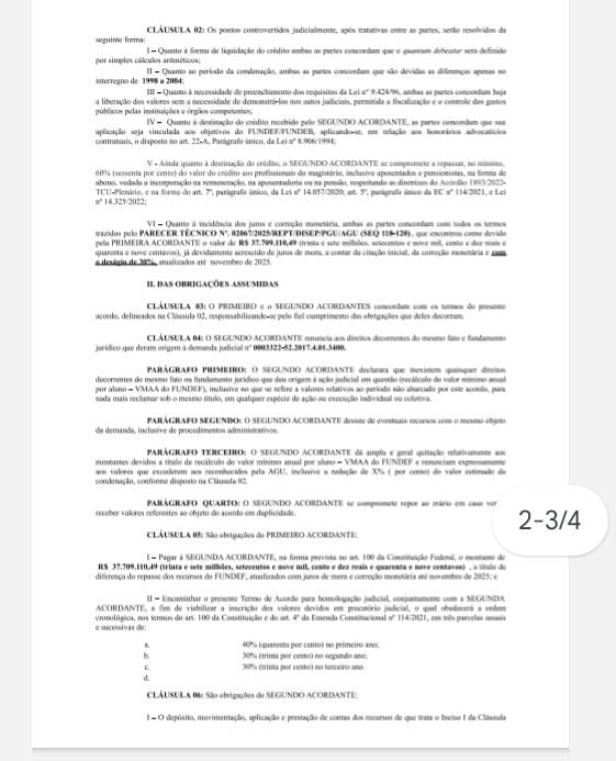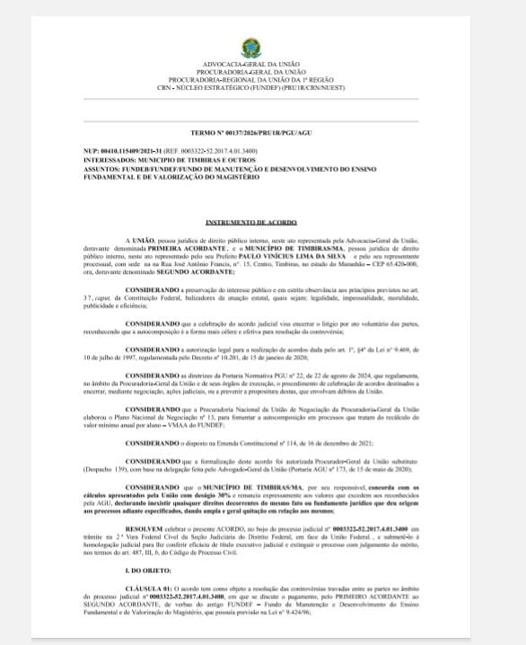 No dia, 23 de janeiro de 2026 – O prefeito Paulo Vinícius assinou um acordo envolvendo os precatórios do município, estimados em R$ 47.136.338,12. A decisão, que previa a renúncia de 30% do valor total, resultou em uma perda de aproximadamente R$ 14 milhões para os professores efetivos da rede municipal.