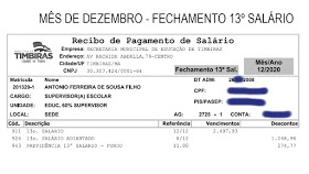 Em conversa informal com outros servidores e em análise de seus vencimentos referentes ao 13° salário do referido ano observou-se a mesma prática do desconto indevido nos vencimentos.